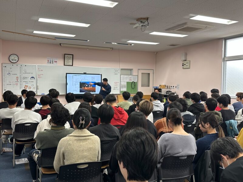 当日は、建築を学ぶ学生の皆さんに向けて、ベルハウジングの家づくりや、新築・リフォームの仕事の流れについてお話ししました。