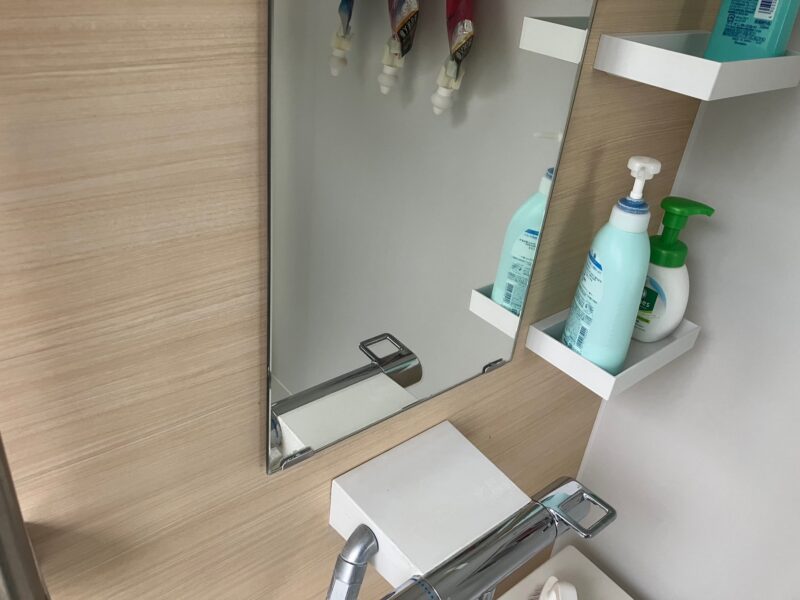 こちらも100円ショップのアイテムを使って清掃したところ、鏡がはっきり映るほど綺麗になりました。