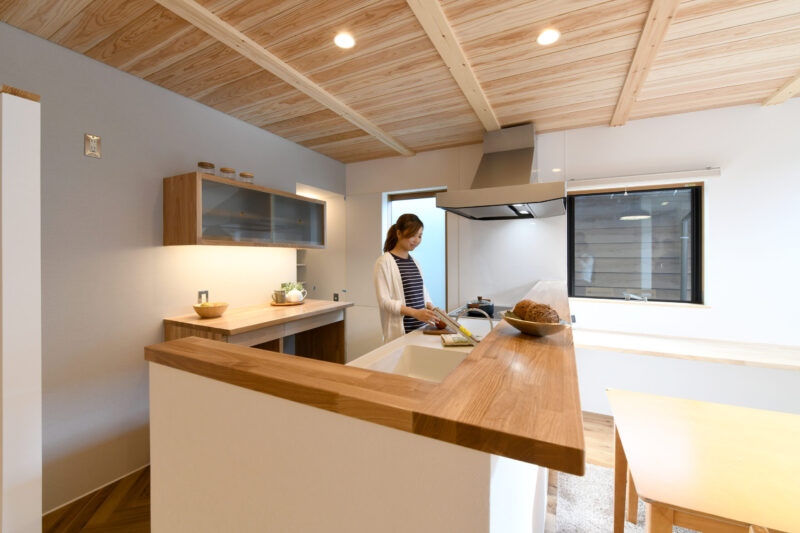 料理をしながらリビング全体を見渡せる対面キッチン。家族との会話が自然と生まれます。