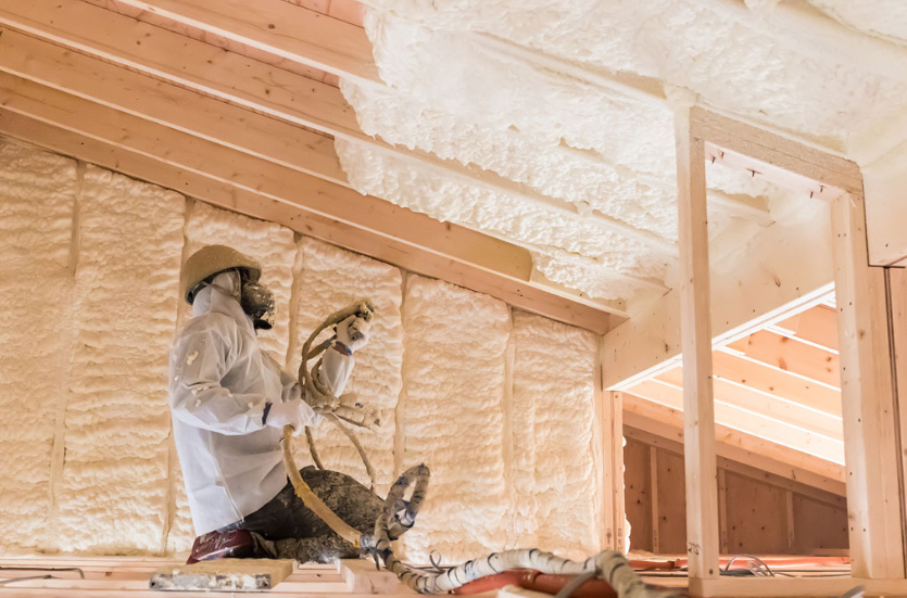 屋根裏に発泡断熱材を隙間なく吹き付けます