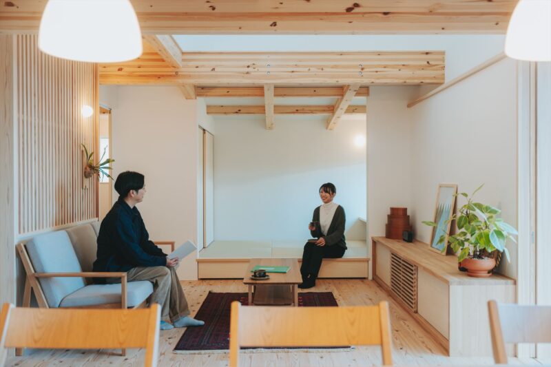 新築の家 向陽モデルハウス「街中でも木に囲まれて暮らす家」鹿児島市向陽1丁目 ベルハウジングの「向陽モデルハウス」は、2025年に誕生しました。 木材をふんだんに使った住まいならではの味わいや、玄関まわりや庭の自然をお家全体に取り込んだ暮らしの魅力をご体感いただけます。 1階部分は杉板張りで仕上げ、自然素材のあたたかみを感じられるデザインに。 落ち着いた色合いのガルバリウムとの組み合わせが、やさしく上品な印象を与えます。 木のぬくもりと植栽の緑が心地よく調和し、四季の移ろいとともに表情を変える外観。 街並みにもやさしく馴染む、ナチュラルで穏やかな佇まいです 外観は、黒のガルバリウム鋼板と杉板の張り 室内は、開放的な吹き抜けが広がる明るいリビングを中心に構成されています。高窓から差し込むやわらかな光が、時間とともに変化する表情を室内に届け、穏やかな雰囲気を演出します。 キッチンは家族との会話が自然に生まれるコの字型の造作キッチン。調理スペース、作業カウンター、配膳スペースが効率的に配置され、料理中も家族とコミュニケーションを取りながら作業できます。収納や作業動線にもこだわり、使いやすさとデザイン性を両立。毎日の料理が楽しくなるだけでなく、片付けや後片付けもスムーズに行える工夫が随所に施されています。 リビングの一角にある小上がり和室には、カウンターを設けています。くつろぎやお昼寝、子どもの遊び場としてだけでなく、勉強や読書、作業スペースとしても活躍する多用途な空間です。家族それぞれが思い思いに過ごしながらも、お互いの気配を感じられる穏やかな空間です。 洗面所から横につながる脱衣所は、室内干しもできる設計。天候を気にせず洗濯物を干せ、家事の動線もスムーズに保てます。 2階には書斎を設け、クローゼットを通って寝室へとつながる動線を確保。プライベート空間を分けつつも、暮らしの便利さと快適さを両立しています。 木のぬくもりや光のやわらかさが重なり合い、日々の暮らしに心地よい安心感を与えてくれる向陽モデルハウス、是非ご体感ください。 <アクセス> 予約制となっておりますので、ご都合の良い日時をお知らせください。担当が、ご案内・ご説明をさせて頂きます。 下記よりお申込み下さい 必須お名前 必須ふりがな 必須メールアドレス 必須電話番号 必須郵便番号 必須都道府県 必須ご住所 任意ベルハウジングへのお問い合わせは・・・ 初めて2回目以上資料請求のみ 任意見学希望日時 ※第2希望があれば、備考にご記入ください 123456789101112月 12345678910111213141516171819202122232425262728293031日 10111213141516時 0030分 任意参加希望人数 人 任意備考 N様ファミリー 霧島市